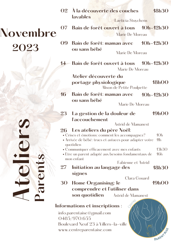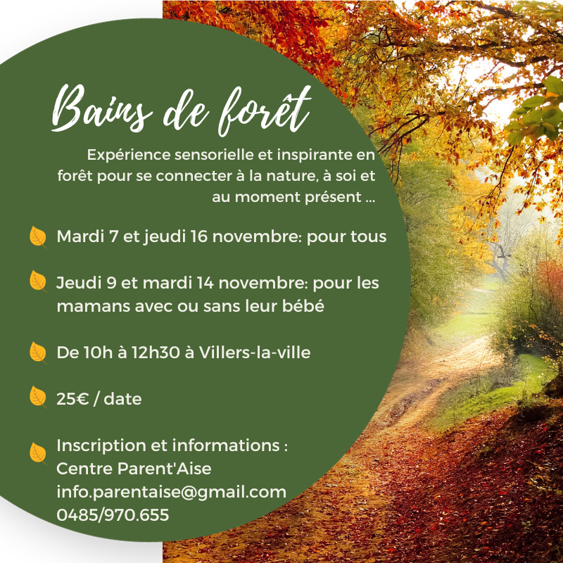 Pour terminer, certains la connaissent déjà car elle est à mes côtés lors de nos sorties du mercredi en forêt, Marie De Moreau ouvre son champs des possibles en vous proposant également dès novembre des bains en forêt avec des sessions ouvertes à tous et d’autres réservées et adaptées aux mamans accompagnées ou non de leur bébé.