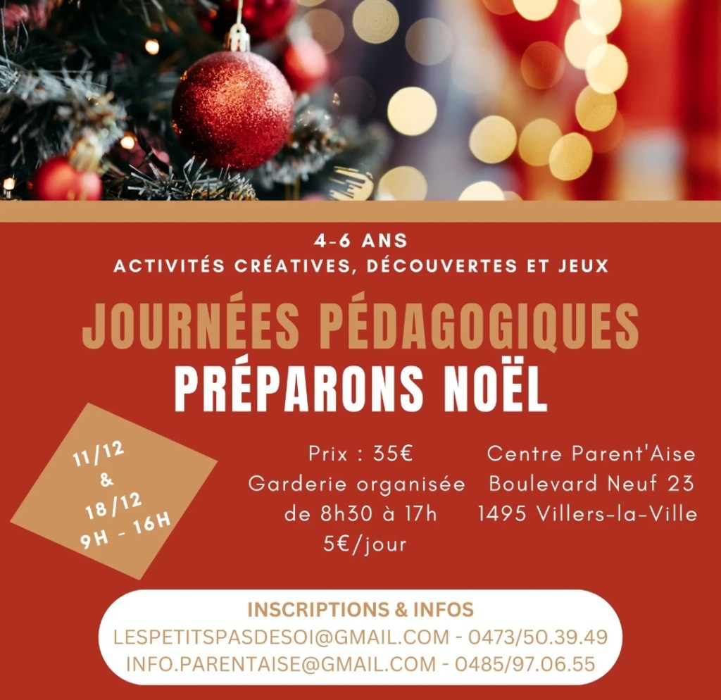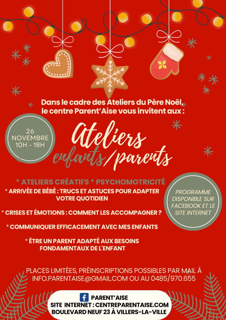 Nous vous annonçons avec un immense plaisir notre participation à la 9ème édition des Ateliers du père Noël organisés sur toute la commune de Villers-la-Ville.
