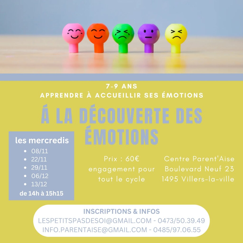 Stéphanie, thérapeute en reconnexion émotionnelle pour les enfants et coach scolaire, propose dès ce 8 novembre un cycle d’ateliers lecture et réflexion « à la découverte des émotions » avec 2 groupes d’âge (4-6 ans et 7-9 ans)
