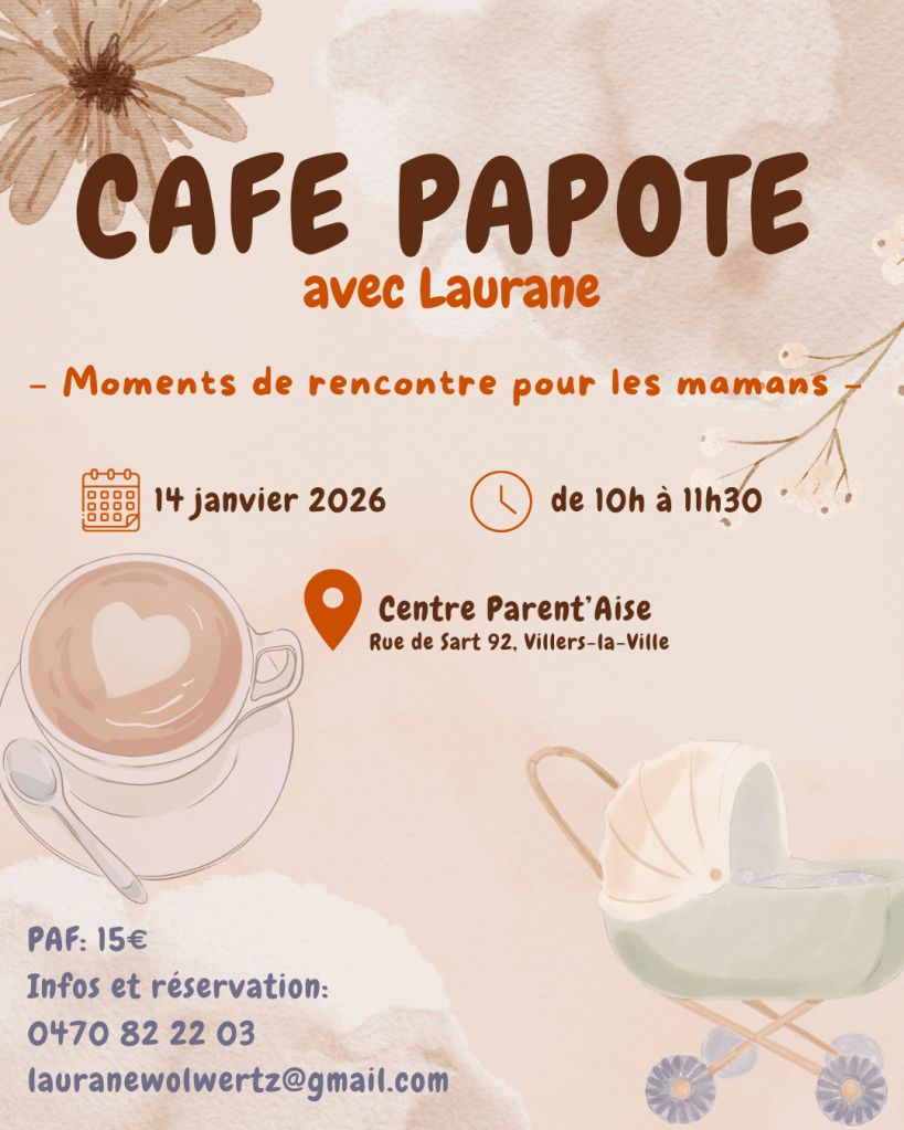 Les Cafés Papote sont réservés aux mamans, avec une attention particulière portée au non-jugement, à l’écoute et au respect du rythme de chacune.